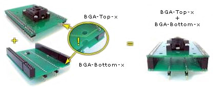 Нижняя плата BGA адаптера. Подходит к программаторам BeeHive208S, BeeHive204, BeeProg2, BeeProg2C, содержит МК PIC12F629-I/SN, предназначен для flash устройств в корпусе BGA с матрицей 8*8 пинов. 2 rows, 2x 24 pins, square, 0.6x0.6mm, rows spacing 600mil Ссылкаpg4uwarc341.zipСсылка на фото | ||||||